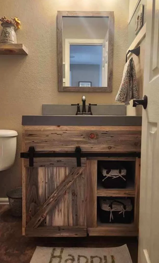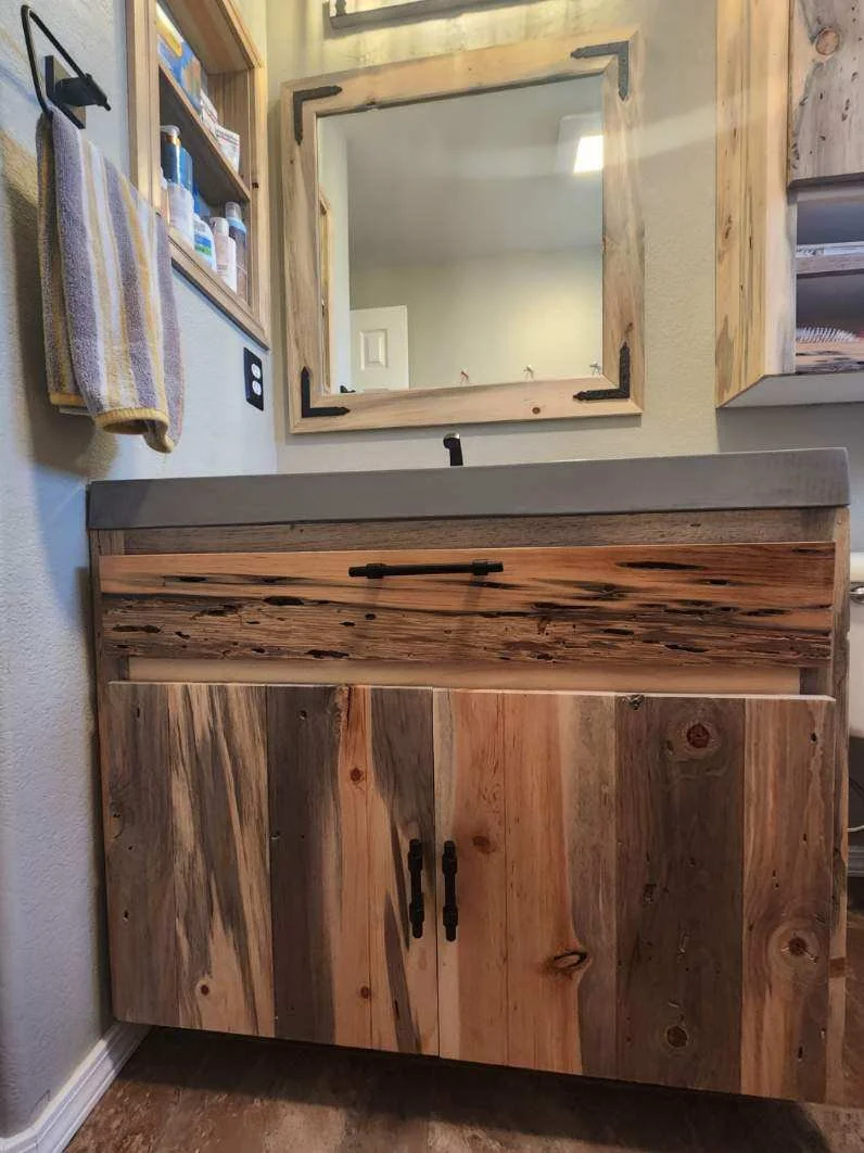 Designed with both elegance and functionality, the vanity includes smooth functional doors with brass knobs. The clean lines and rustic charm bring a touch of Colorado’s mountain beauty into your home, blending seamlessly with modern or traditional decor.