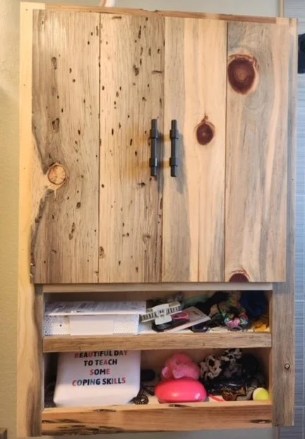 The handcrafted vanities highlight the natural beauty of Gunnison Valley’s beetle kill, giving new life to wood once touched by nature’s challenges. The pale, textured grain features striking blue-gray streaks making each piece truly unique.